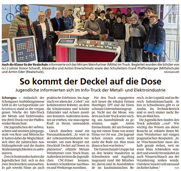 Schongauer Nachrichten: Beitrag über neue Auszubildende in der Eirenschmalz Unternehmensgruppe
